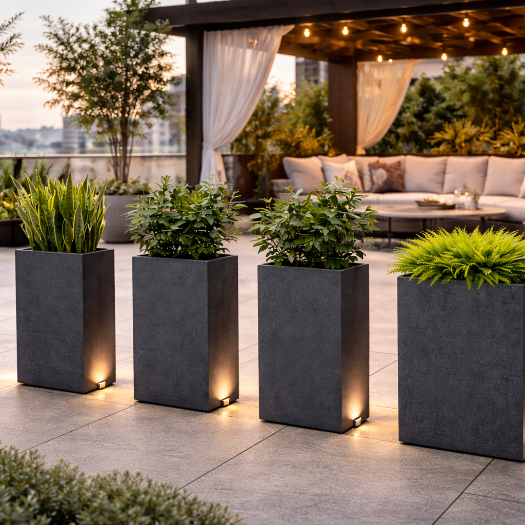 Raumteiler anthrazit bestückt mit Pflanzen -