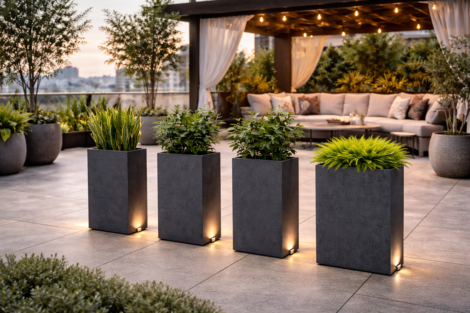 Raumteiler anthrazit bestückt mit Pflanzen -